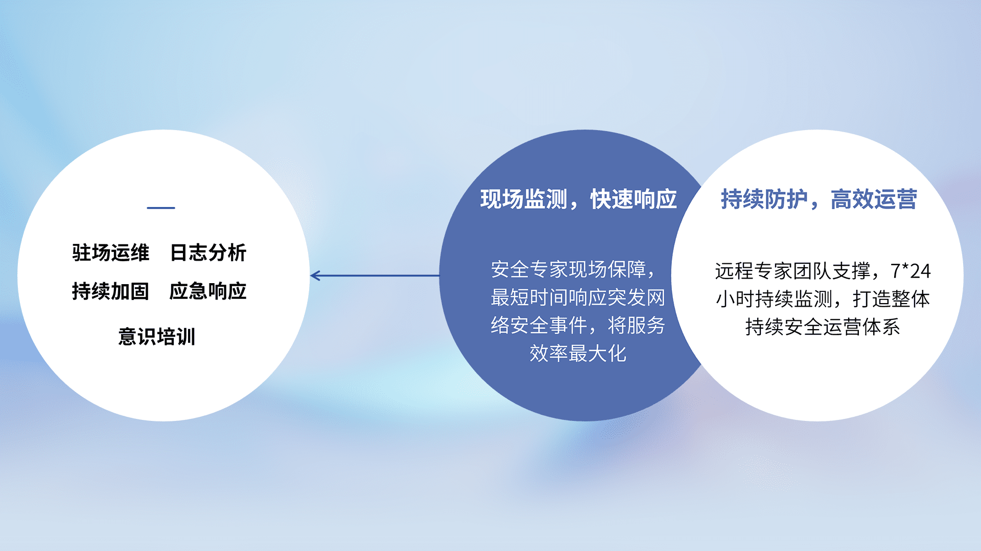 针对客户行业特性,,,提供专属的一站式安全管理服务,,帮助客户全面感知网络空间威胁,,,,通过安全专家的线上、、、、线下防护支持,,,,实现风险闭环,,,,将安全保障常态化,,,,为客户打造常态化安全运维运营服务。。